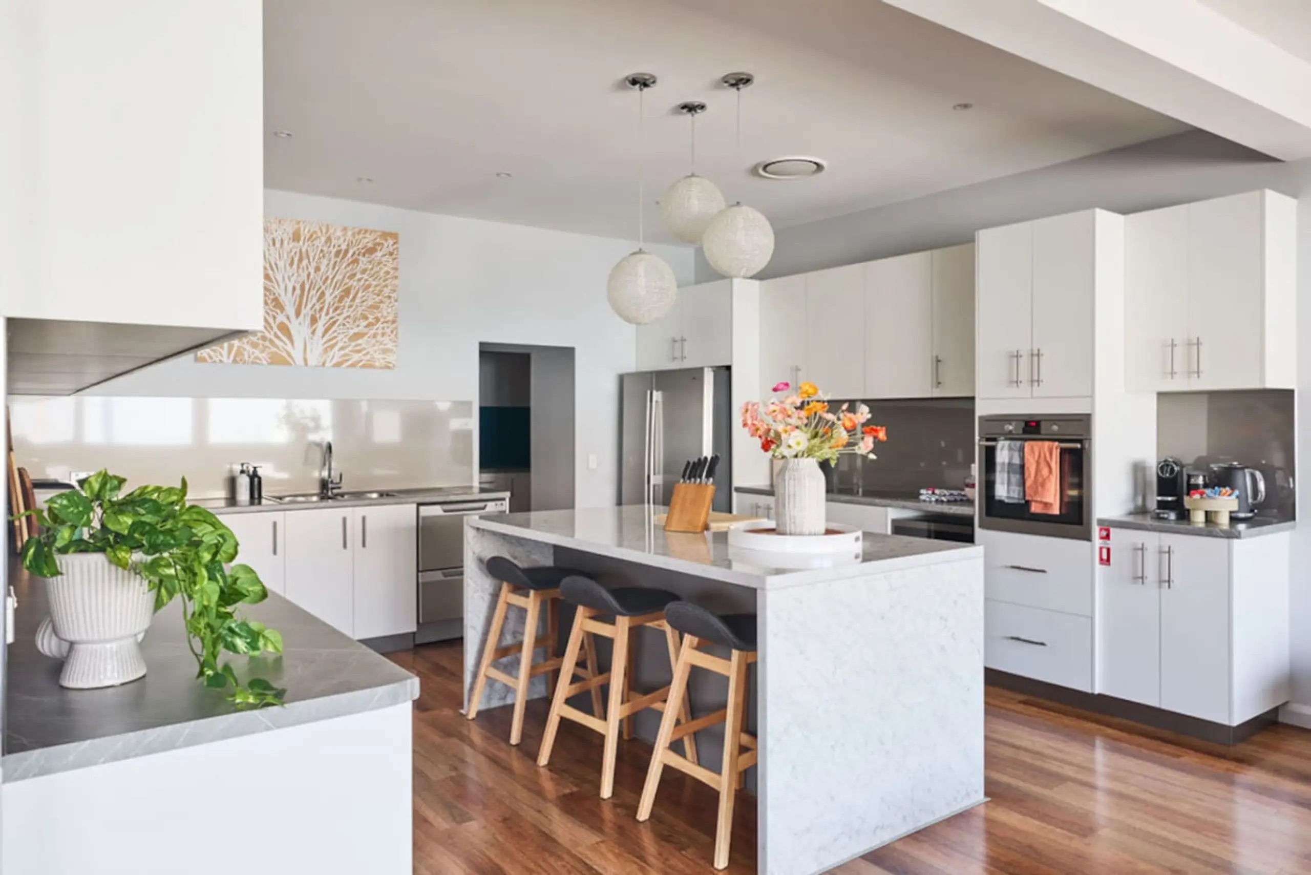 We have a chef's kitchen with a butlers pantry boasting two fridges, two dishwashers, a large stove top and is the perfect space for everyone to gather around to enjoy Tasmania's food and wine offerings.